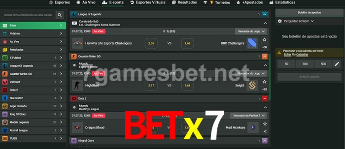 A aposta Betx7 oferece aos jogadores a experiência mais conveniente de apostas em eSports!